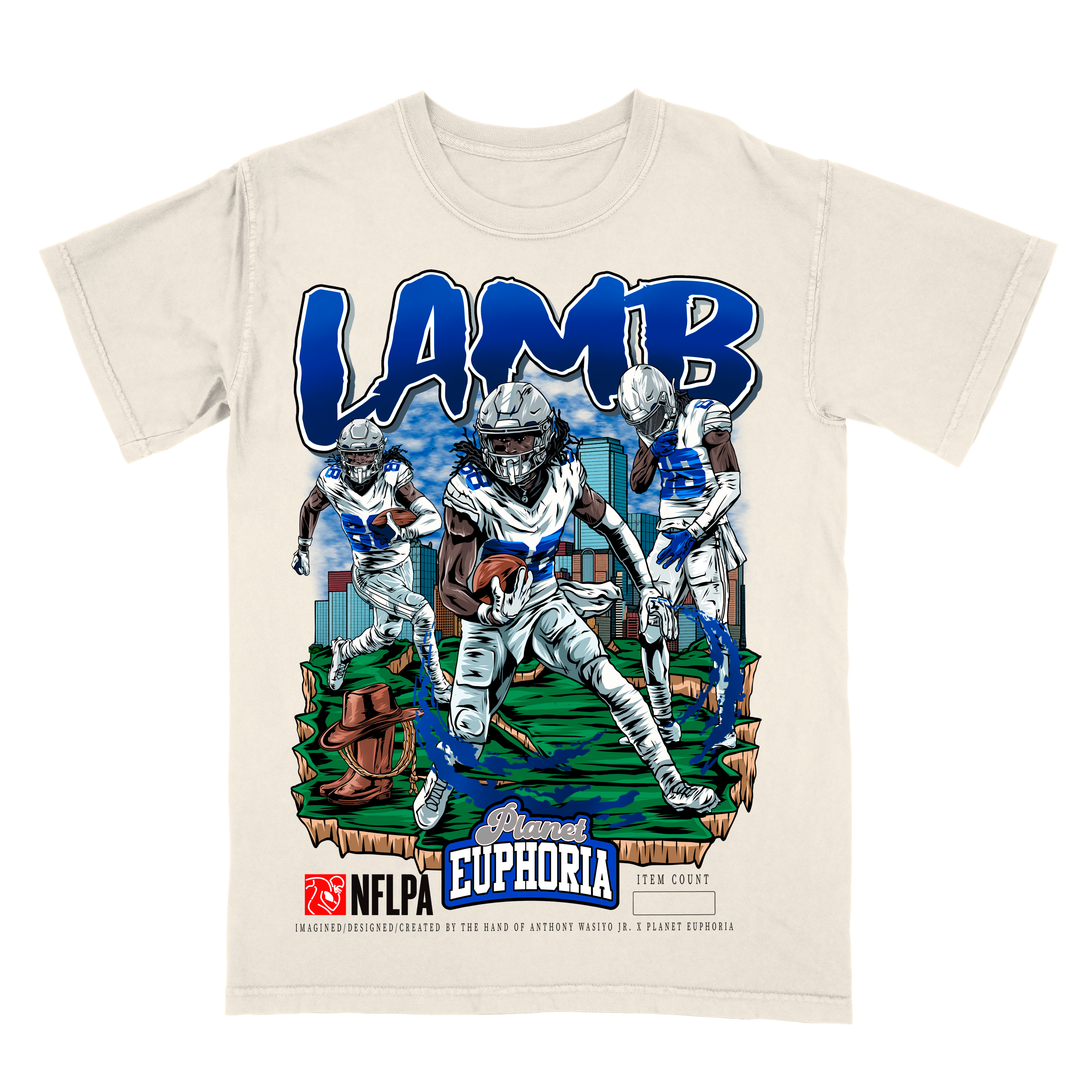 Limited Edition CeeDee Lamb V2 T-Shirt: Official NFLPA Licensed Merchandise, Collector's Edition, Hand Drawn Artwork, #/500 - Premium Quality, Hand Made Graphic Tee for Dallas Football Fans, Available in Off-White & Black