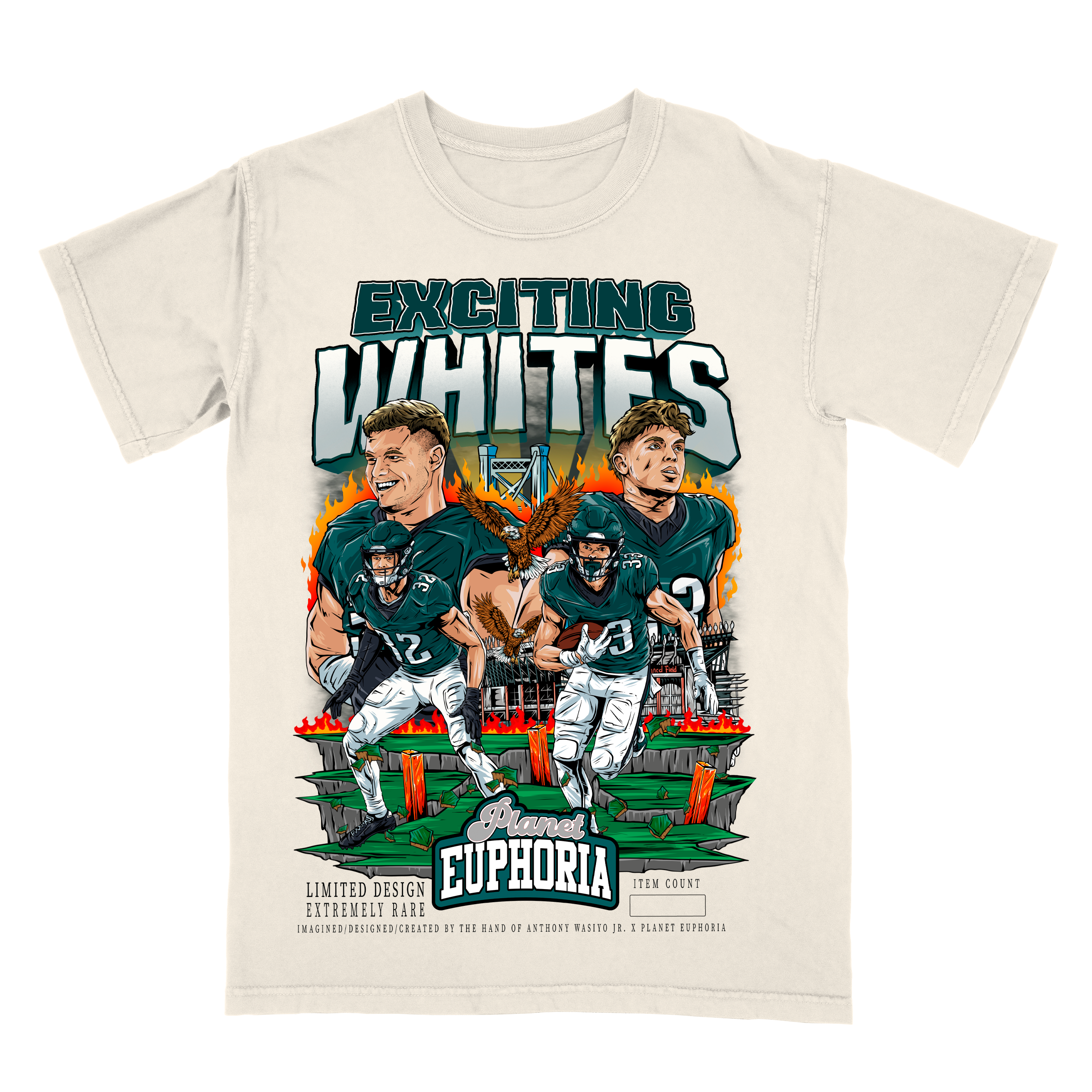 Limited Edition Exciting Whites Off-White T-Shirt: Collector's Edition, Hand Drawn Artwork, #/500 - Premium Quality, Hand Made Graphic Tee for Philadelphia Football Fans