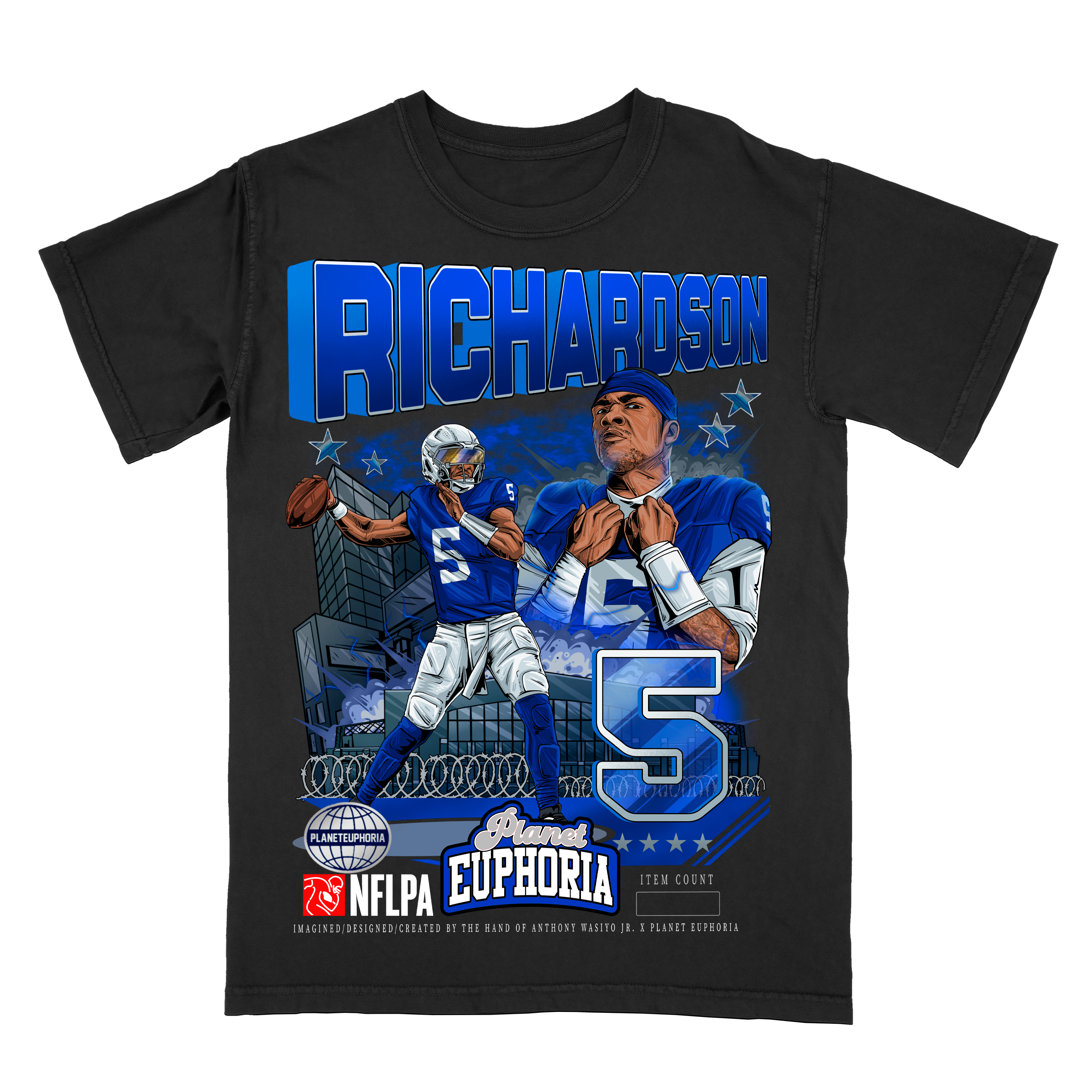 Limited Edition Anthony Richardson V2 T-Shirt: Official NFLPA Licensed Merchandise, Collector's Edition, Hand Drawn Artwork, #/500 - Premium Quality, Hand...