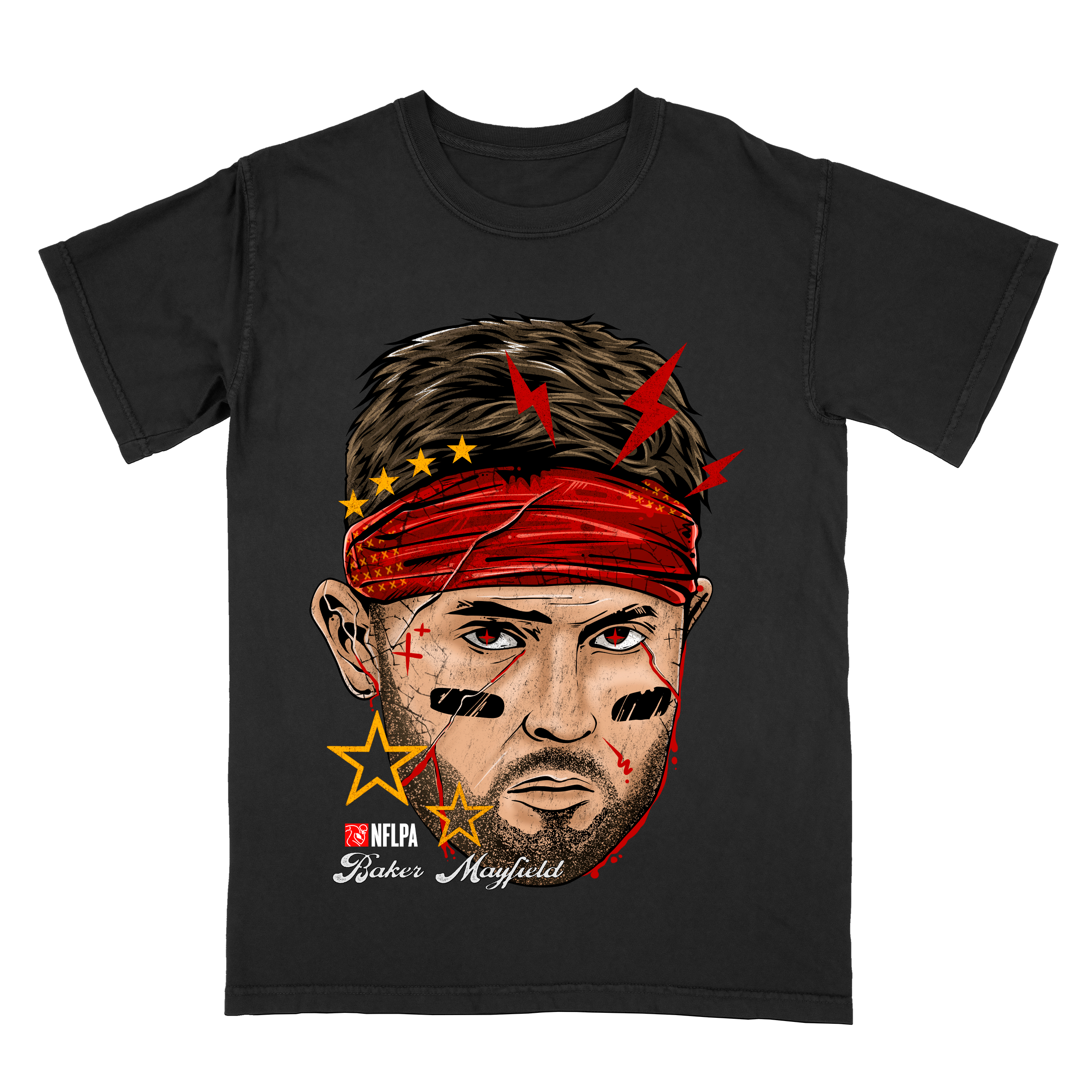 Limited Edition Baker Mayfield Fat Head T-Shirt: Official NFLPA Licensed Merchandise, Collector's Edition, Hand Drawn Artwork - Premium Quality, Hand Made Graphic Tee for Tampa Bay Football Fans, Available in Off-White & Black
