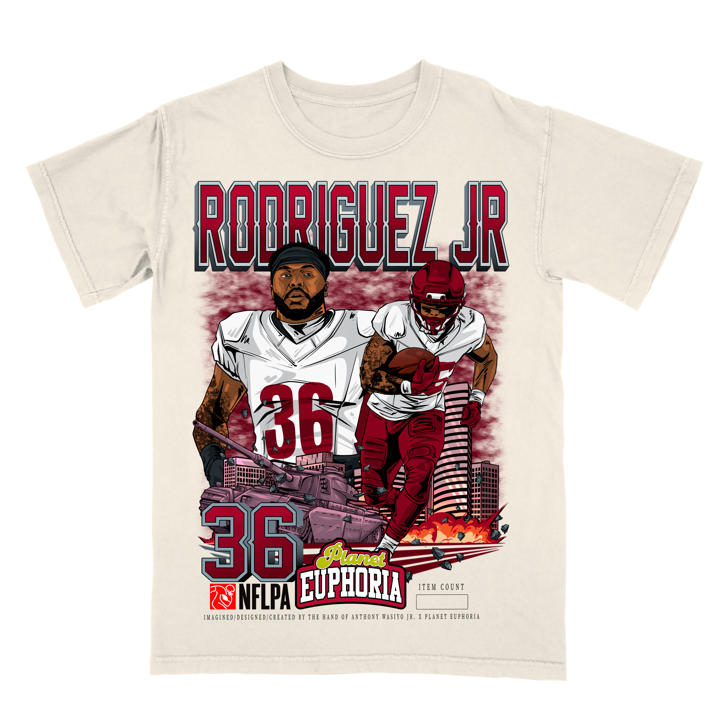 Limited Edition Chris Rodriguez Jr. T-Shirt: Official NFLPA Licensed Merchandise, Collector's Edition, Hand Drawn Artwork, #/500 - Premium Quality, Hand Made Graphic Tee for Washington Football Fans, Available in Off-White & Black