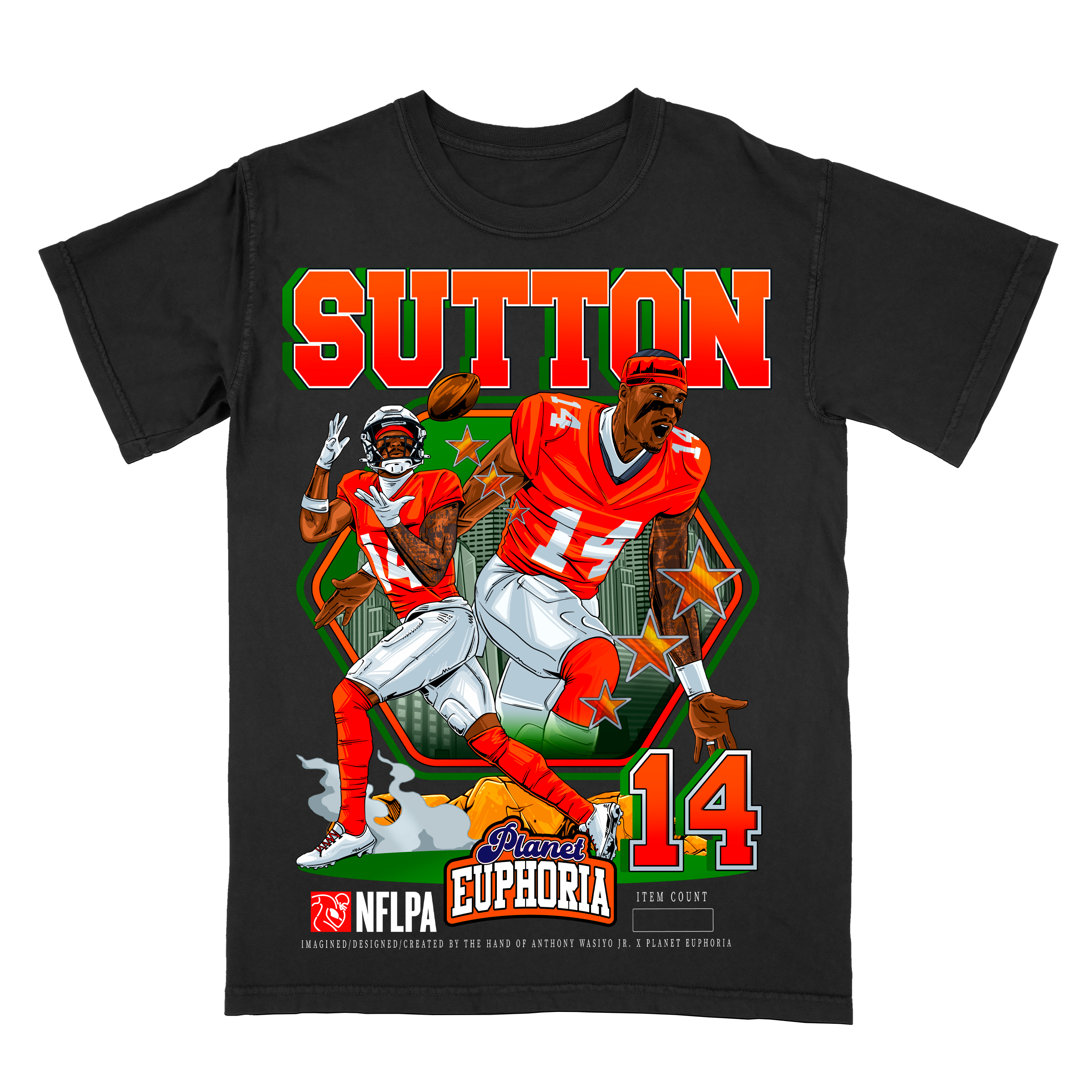 Limited Edition Courtland Sutton V2 T-Shirt: Official NFLPA Licensed Merchandise, Collector's Edition, Hand Drawn Artwork, #/500 - Premium Quality, Hand...
