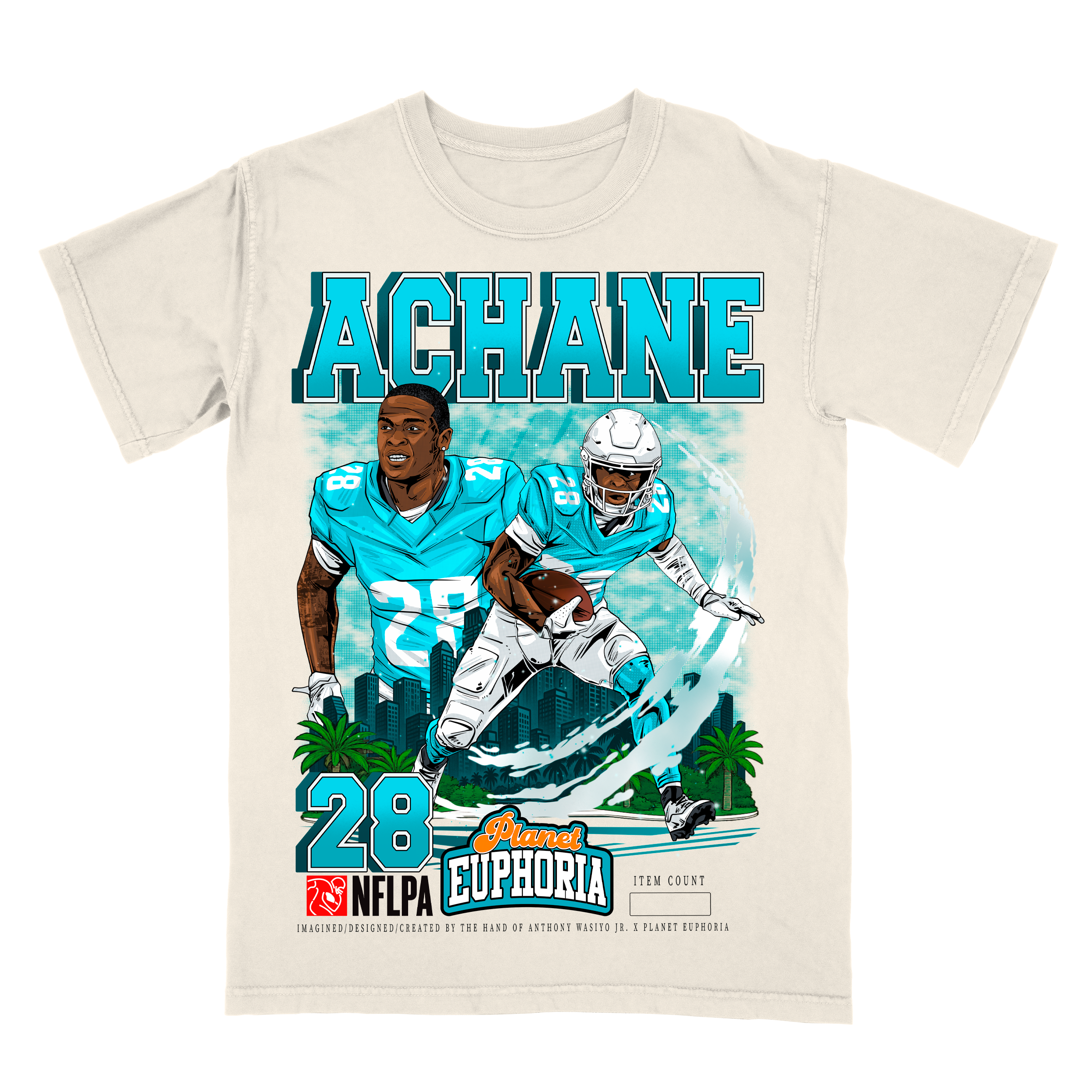 Limited Edition De'Von Achane T-Shirt: Official NFLPA Licensed Merchandise, Collector's Edition, Hand Drawn Artwork, #/500 - Premium Quality, Hand Made...