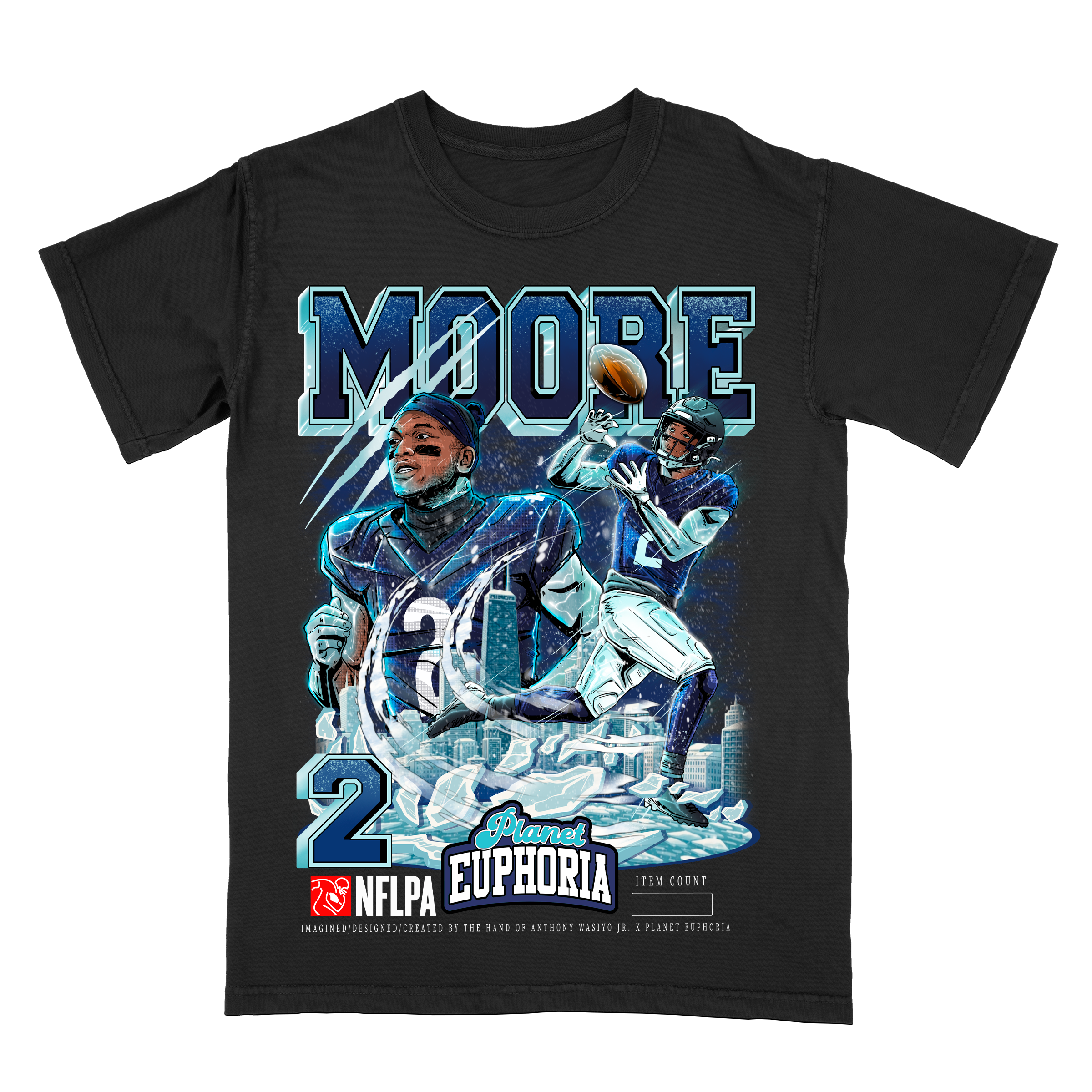 Limited Edition DJ Moore V2 T-Shirt: Official NFLPA Licensed Merchandise, Collector's Edition, Hand Drawn Artwork, #/500 - Premium Quality, Hand Made Graphic Tee for Chicago Football Fans, Available in Off-White & Black