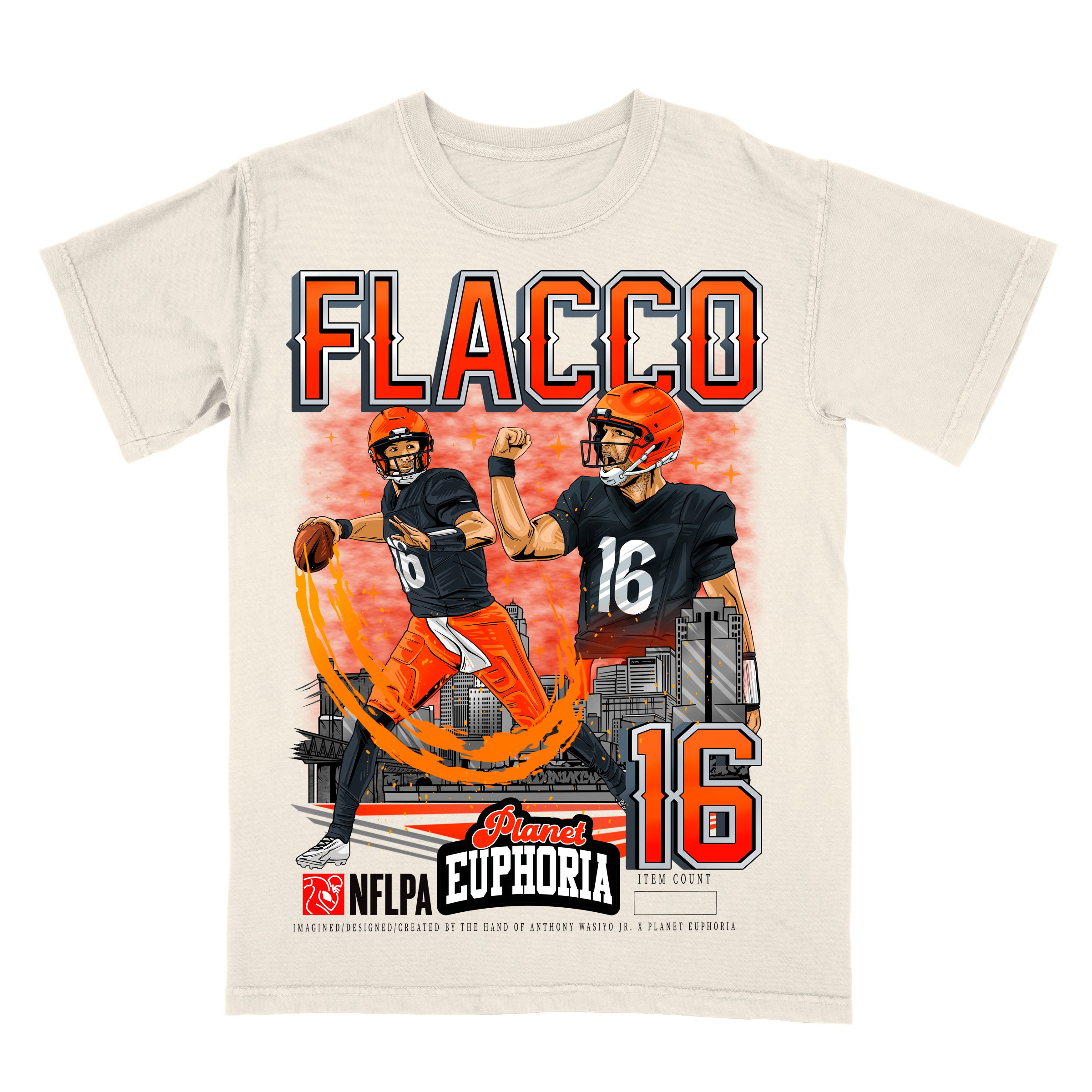 Limited Edition Joe Flacco T-Shirt: Official NFLPA Licensed Merchandise, Collector's Edition, Hand Drawn Artwork, #/500 - Premium Quality, Hand Made Graphic Tee for Cincinnati Football Fans, Available in Off-White & Black