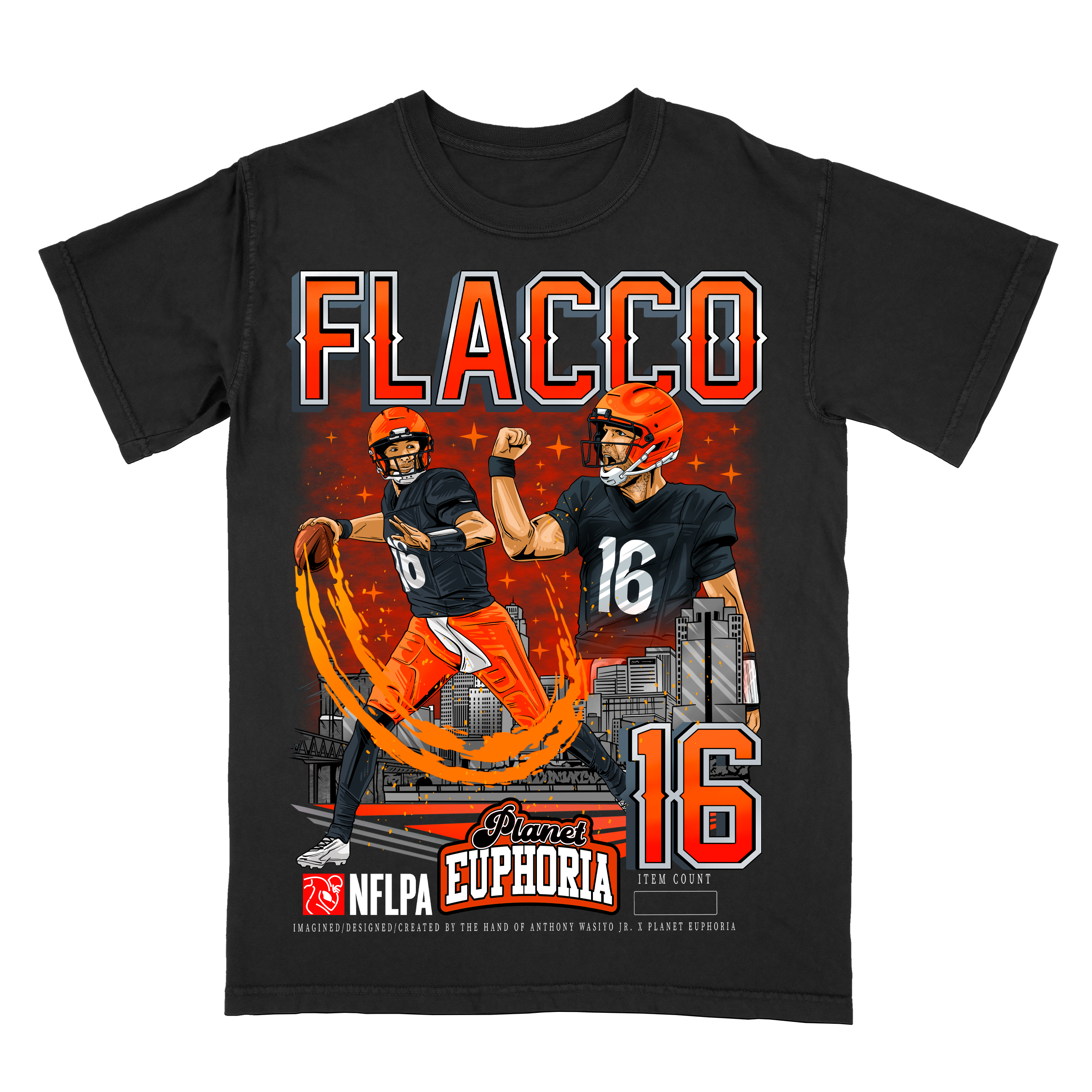 Limited Edition Joe Flacco T-Shirt: Official NFLPA Licensed Merchandise, Collector's Edition, Hand Drawn Artwork, #/500 - Premium Quality, Hand Made Graphic Tee for Cincinnati Football Fans, Available in Off-White & Black