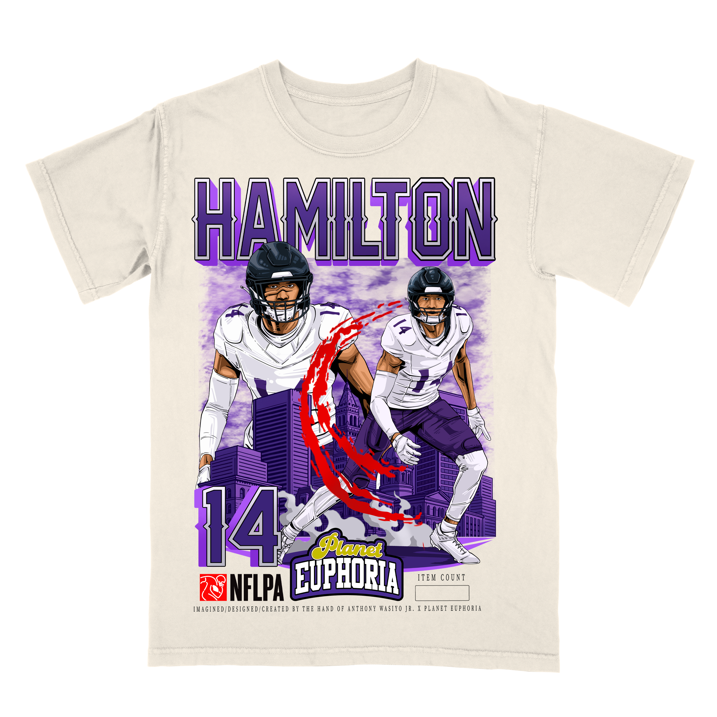 Limited Edition Kyle Hamilton T-Shirt: Official NFLPA Licensed Merchandise, Collector's Edition, Hand Drawn Artwork, #/500 - Premium Quality, Hand Made Graphic Tee for Baltimore Football Fans, Available in Off-White & Black