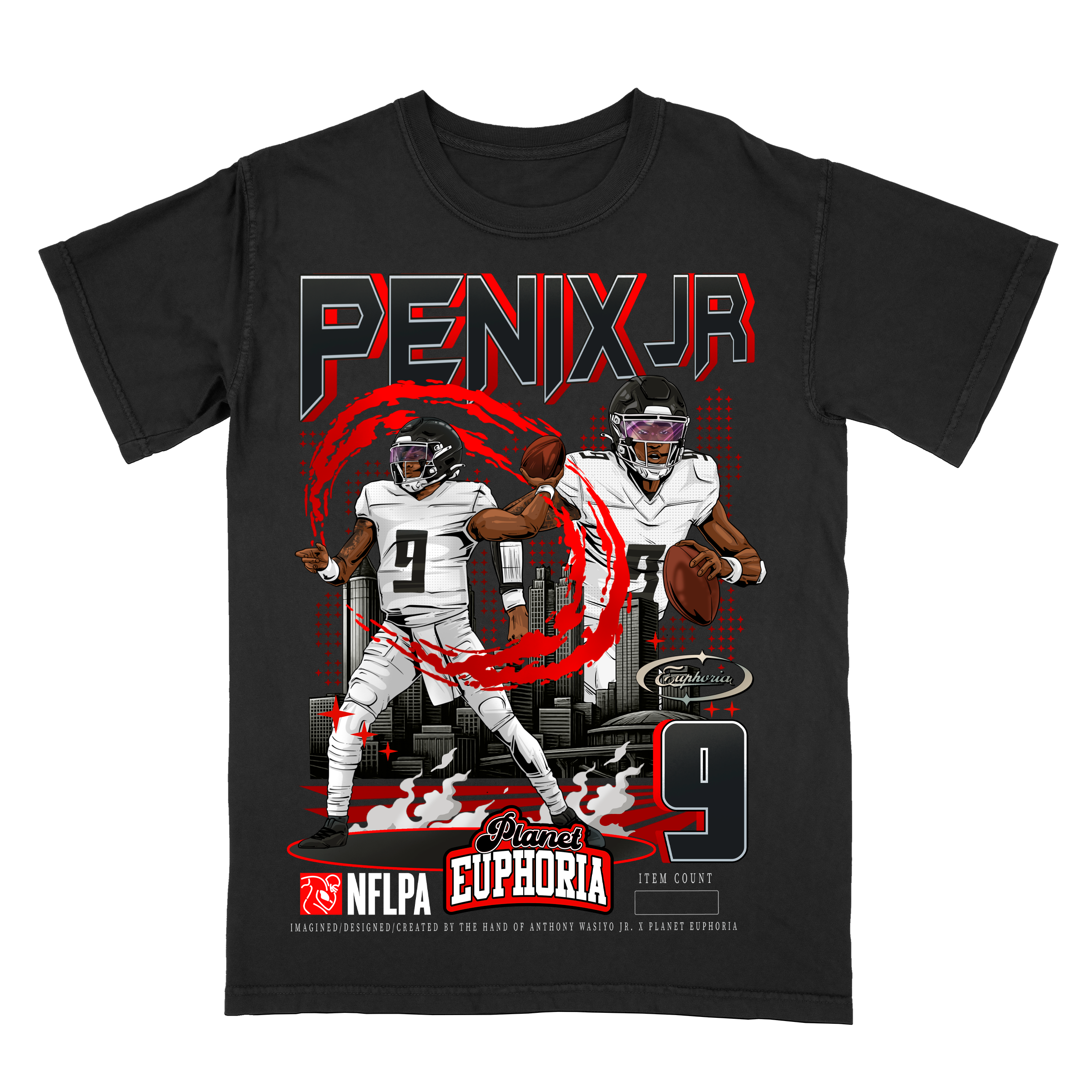 Limited Edition Michael Penix Jr. T-Shirt: Official NFLPA Licensed Merchandise, Collector's Edition, Hand Drawn Artwork, #/500 - Premium Quality, Hand Made Graphic Tee for Atlanta Football Fans, Available in Off-White & Black