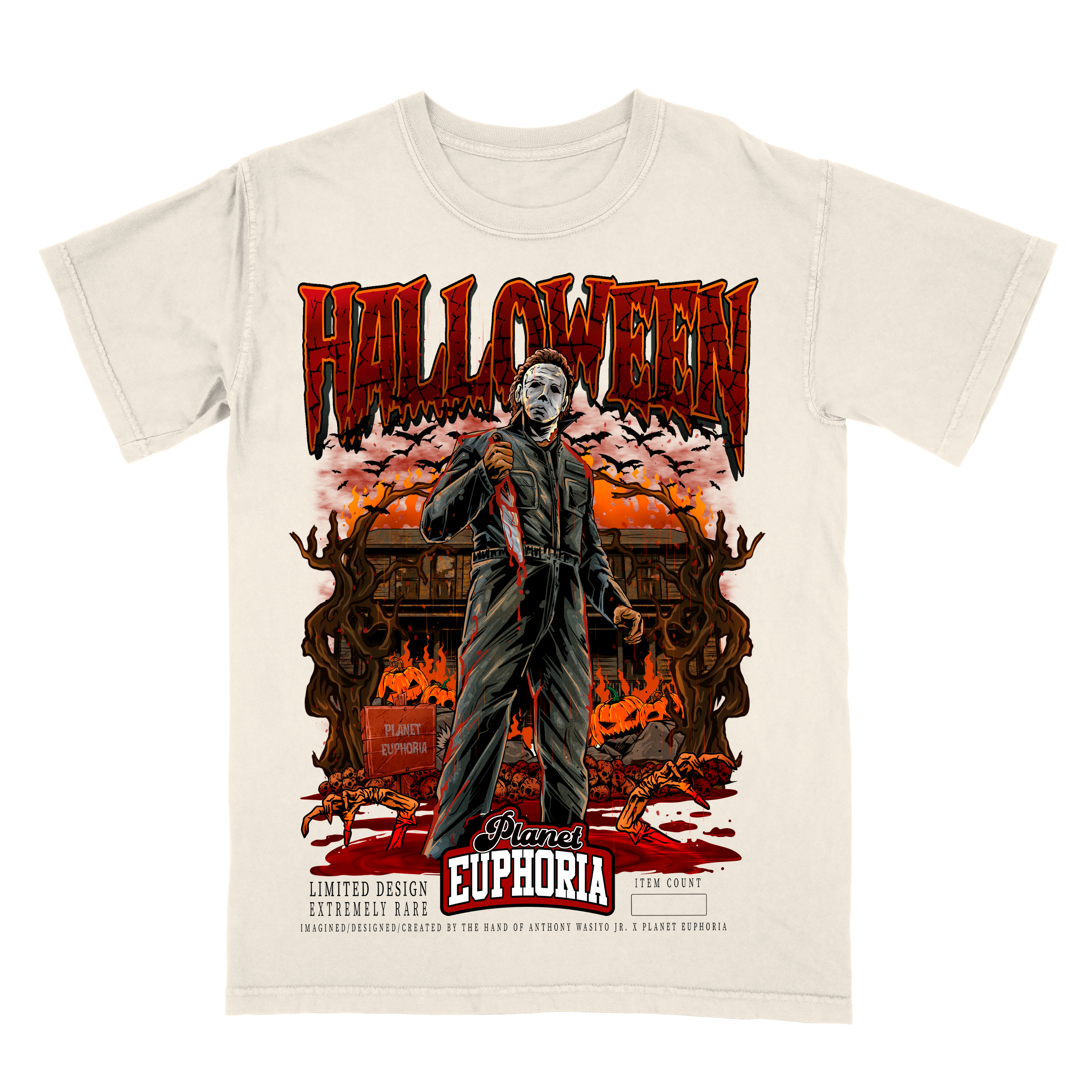 Limited Edition MM Halloween T-Shirt: Collector's Edition, Hand Drawn Artwork, #/500 - Premium Quality, Hand Made Graphic Tee for Halloween Fans, Available in Off-White & Black