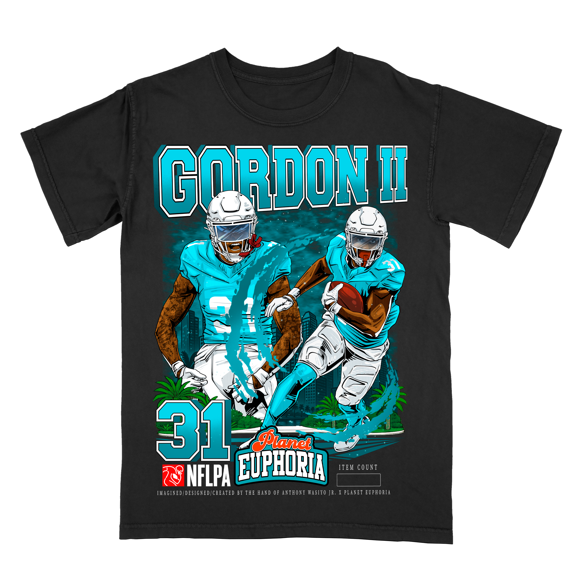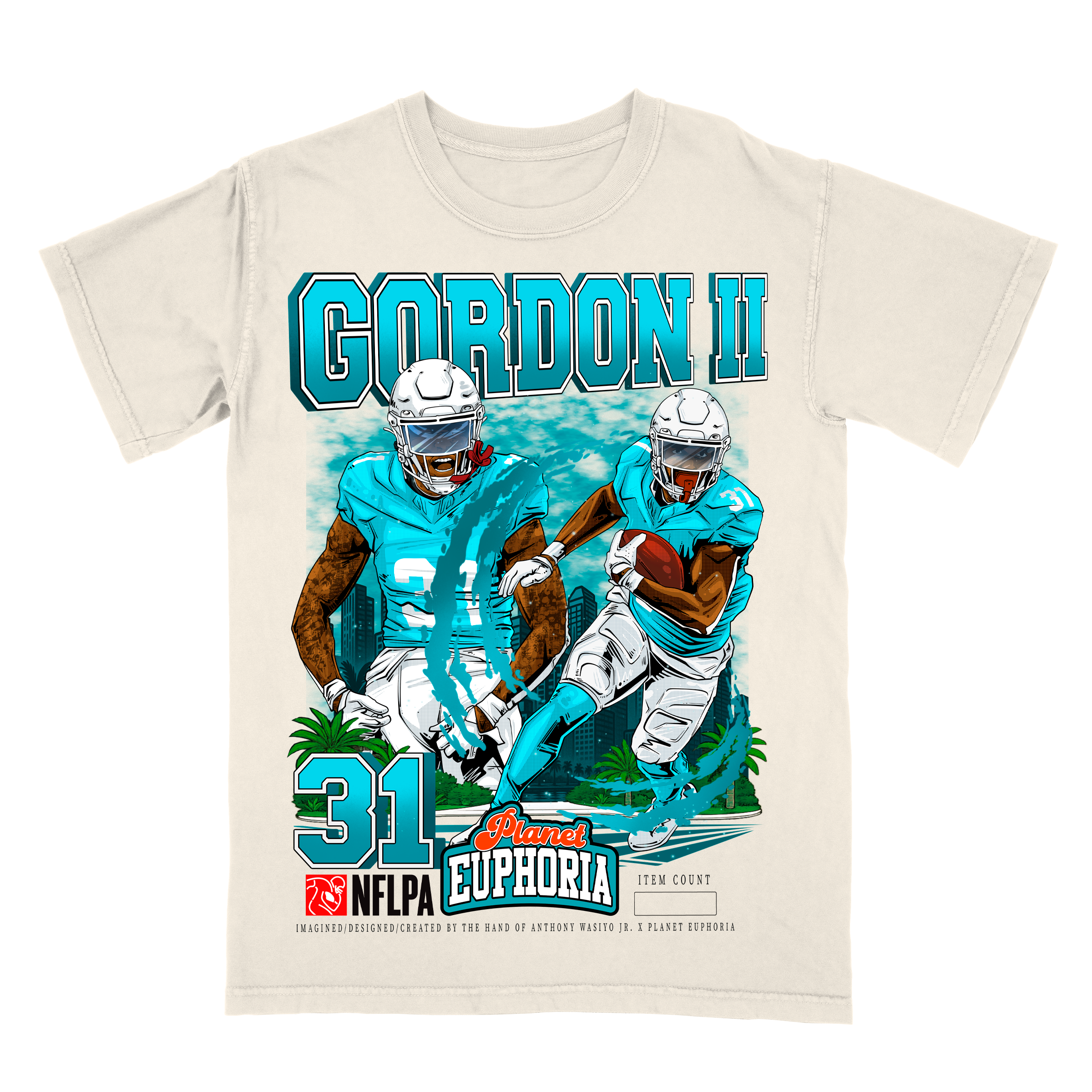 Limited Edition Ollie Gordon II T-Shirt: Official NFLPA Licensed Merchandise, Collector's Edition, Hand Drawn Artwork, #/500 - Premium Quality, Hand Made Graphic Tee for Miami Football Fans, Available in Off-White & Black