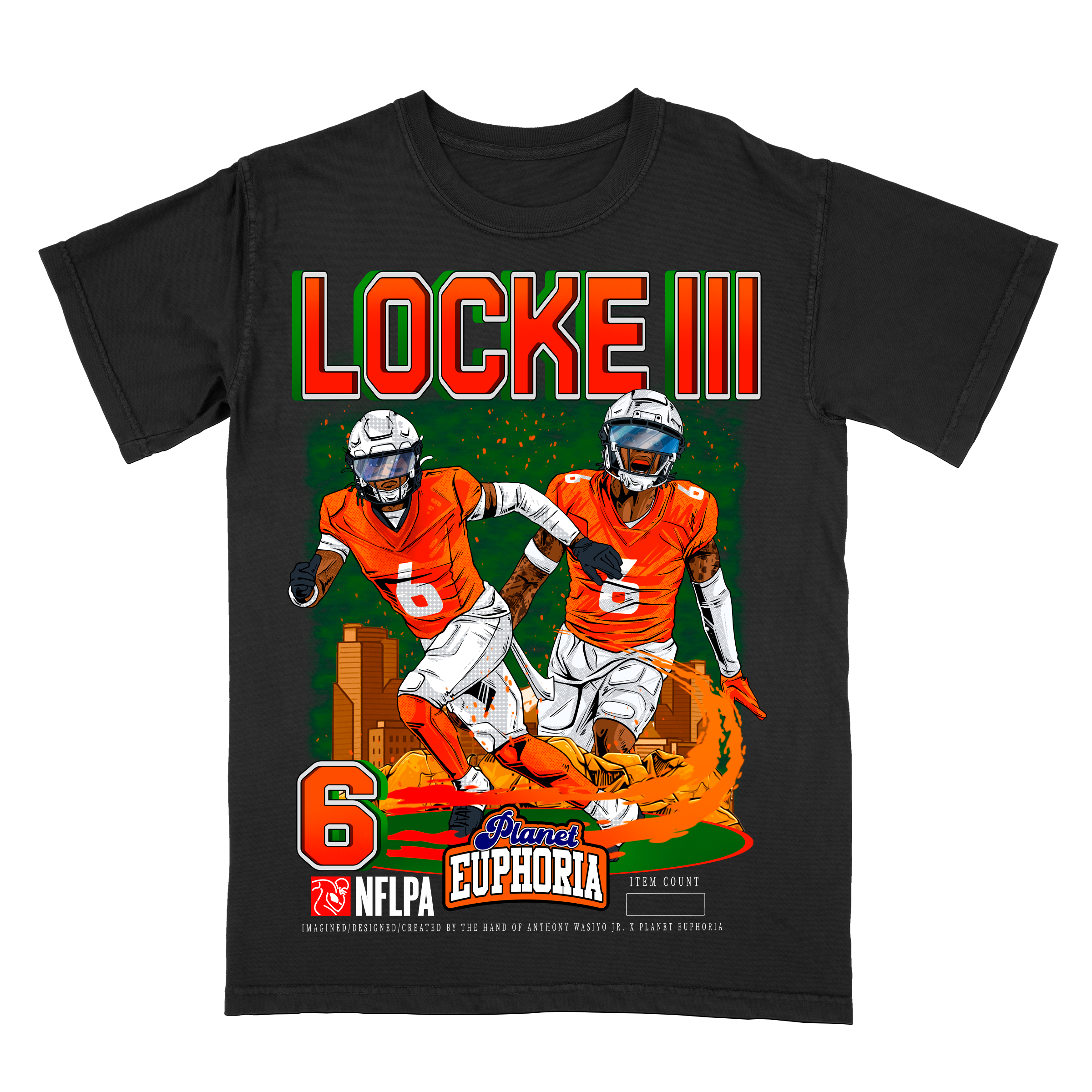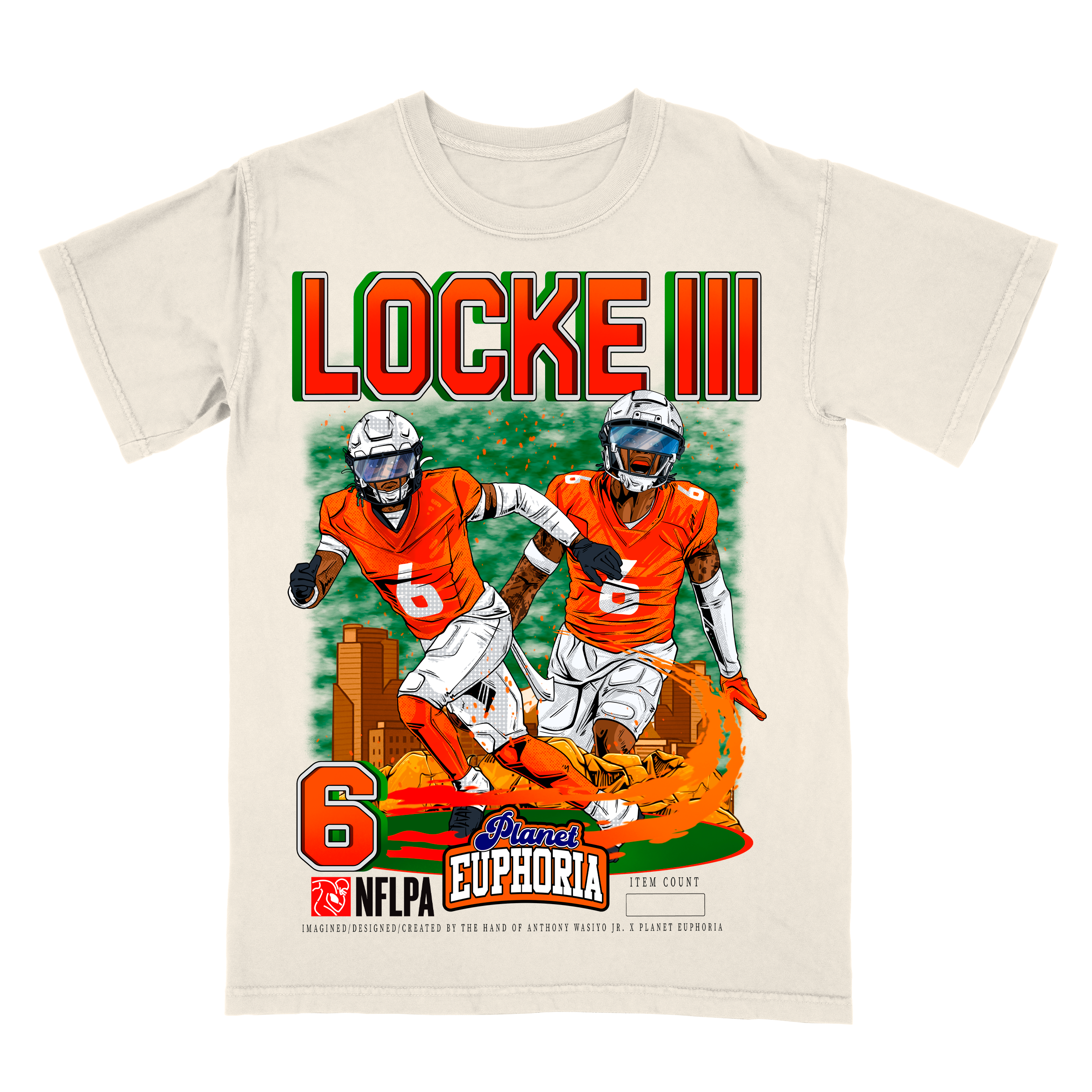 Limited Edition PJ Locke III T-Shirt: Official NFLPA Licensed Merchandise, Collector's Edition, Hand Drawn Artwork, #/500 - Premium Quality, Hand Made Graphic Tee for Denver Football Fans, Available in Off-White & Black