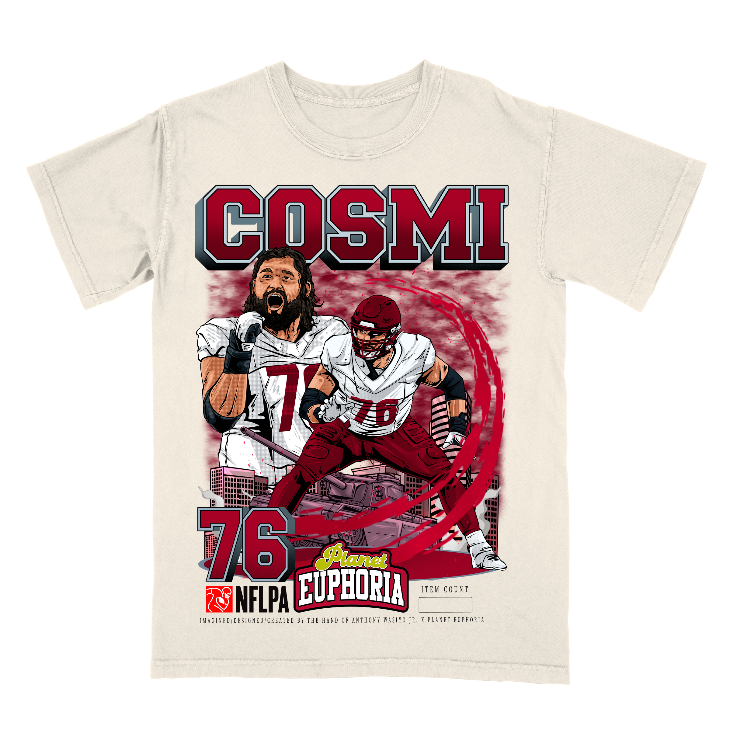 Limited Edition Sam Cosmi T-Shirt: Official NFLPA Licensed Merchandise, Collector's Edition, Hand Drawn Artwork, #/500 - Premium Quality, Hand Made...