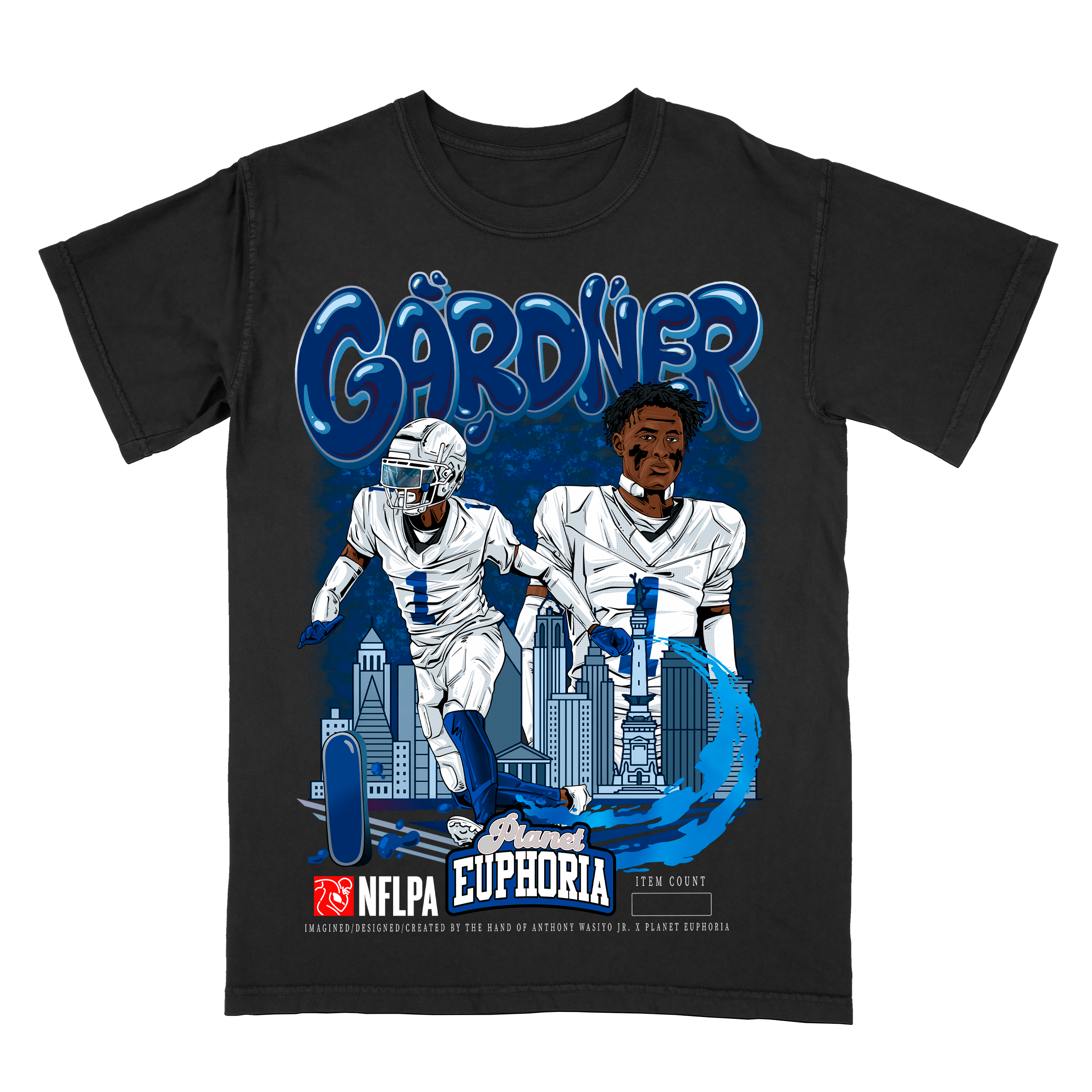 Limited Edition Sauce Gardner T-Shirt: Official NFLPA Licensed Merchandise, Collector's Edition, Hand Drawn Artwork, #/500 - Premium Quality, Hand Made Graphic Tee for Indianapolis Football Fans, Available in Off-White & Black