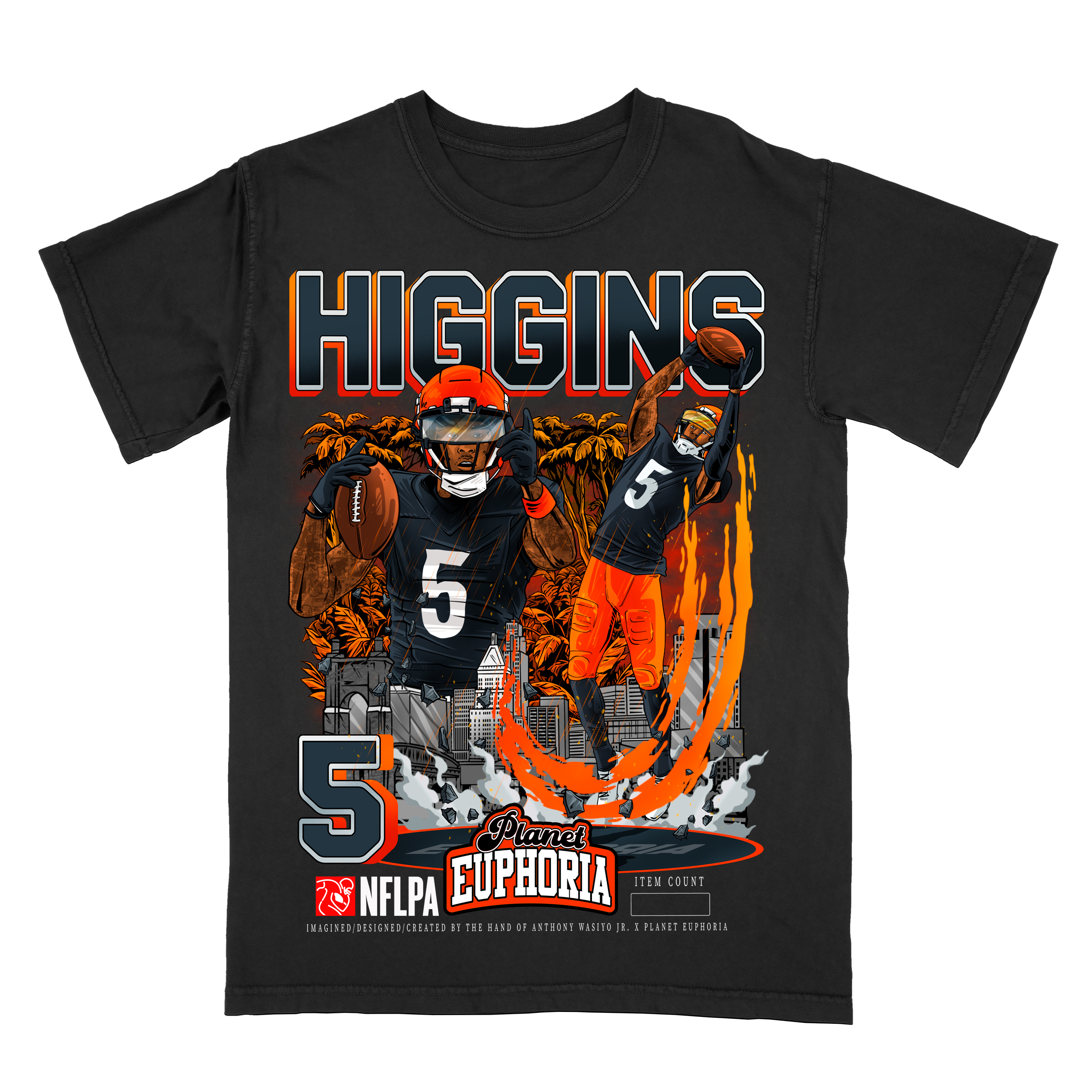Limited Edition Tee Higgins T-Shirt: Official NFLPA Licensed Merchandise, Collector's Edition, Hand Drawn Artwork, #/500 - Premium Quality, Hand Made Graphic Tee for Cincinnati Football Fans, Available in Off-White & Black