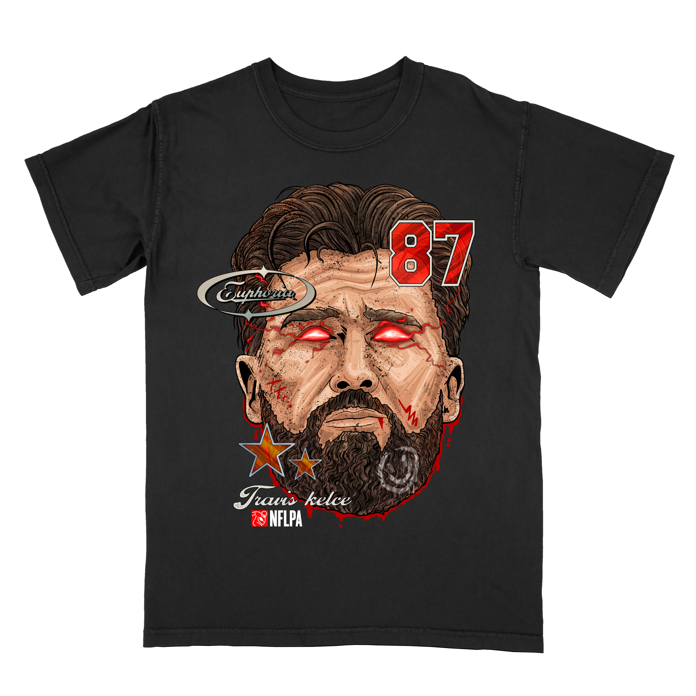 Limited Edition Travis Kelce Fat Head T-Shirt: Official NFLPA Licensed Merchandise, Collector's Edition, Hand Drawn Artwork - Premium Quality, Hand Made Graphic Tee for Kansas City Football Fans, Available in Off-White & Black
