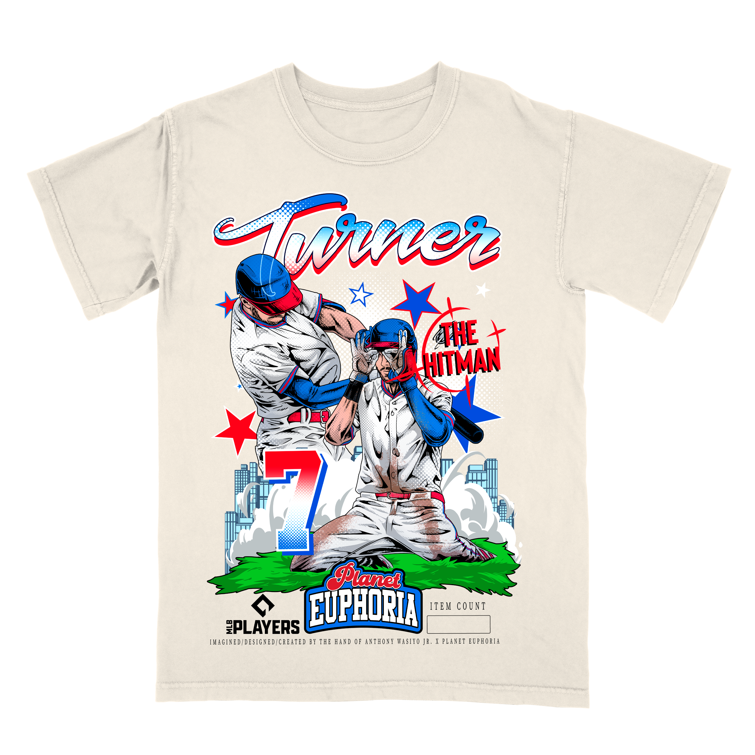 Limited Edition Trea Turner T-Shirt: Official MLBPA Licensed Merchandise, Collector's Edition, Hand Drawn Artwork, #/500 - Premium Quality, Hand Made Graphic Tee for Philadelphia Baseball Fans, Available in Off-White & Black