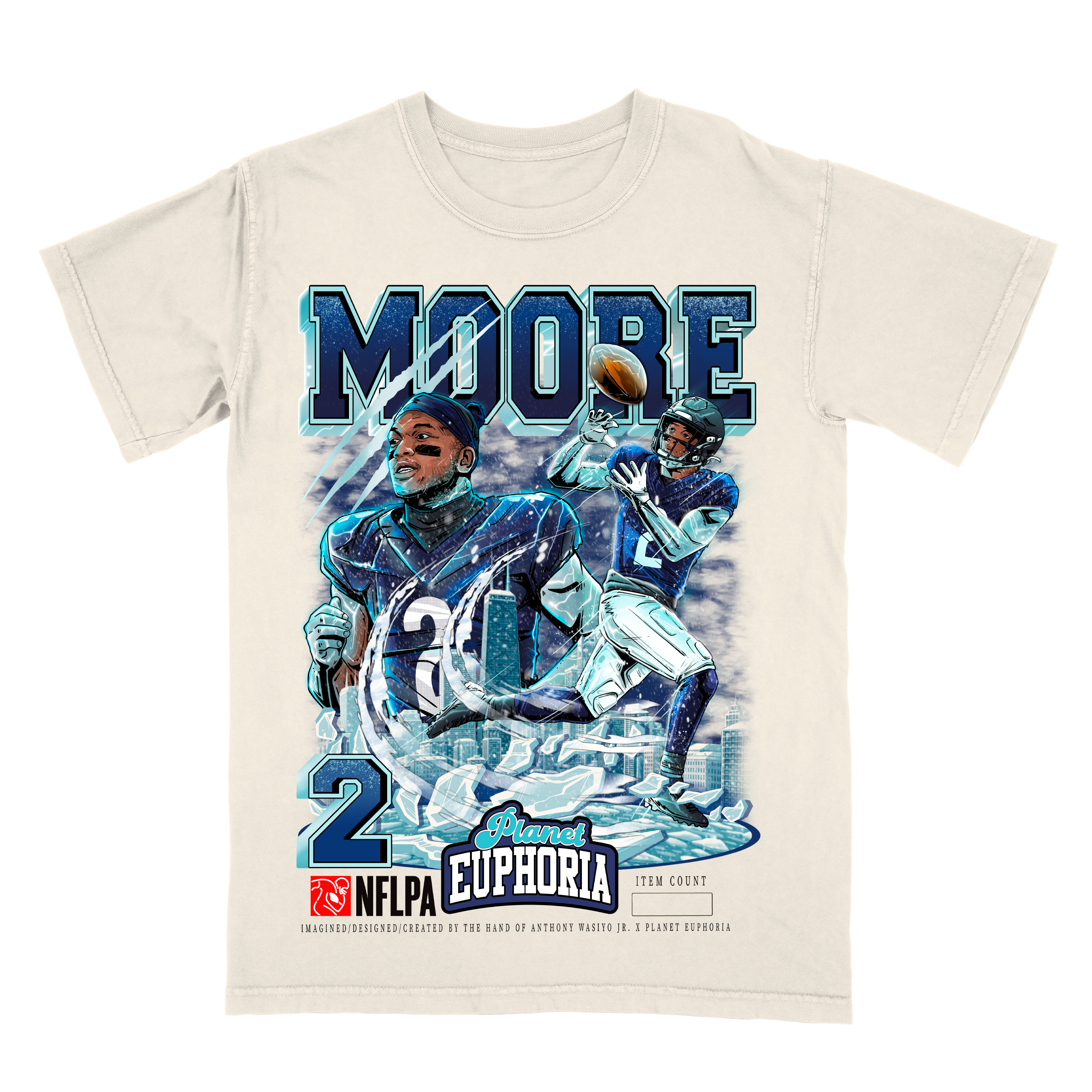 Youth DJ Moore V2 Off-White T-Shirt: Hand Drawn Artwork - Premium Quality, Hand Made, NFLPA Licensed Graphic Tee for Chicago...