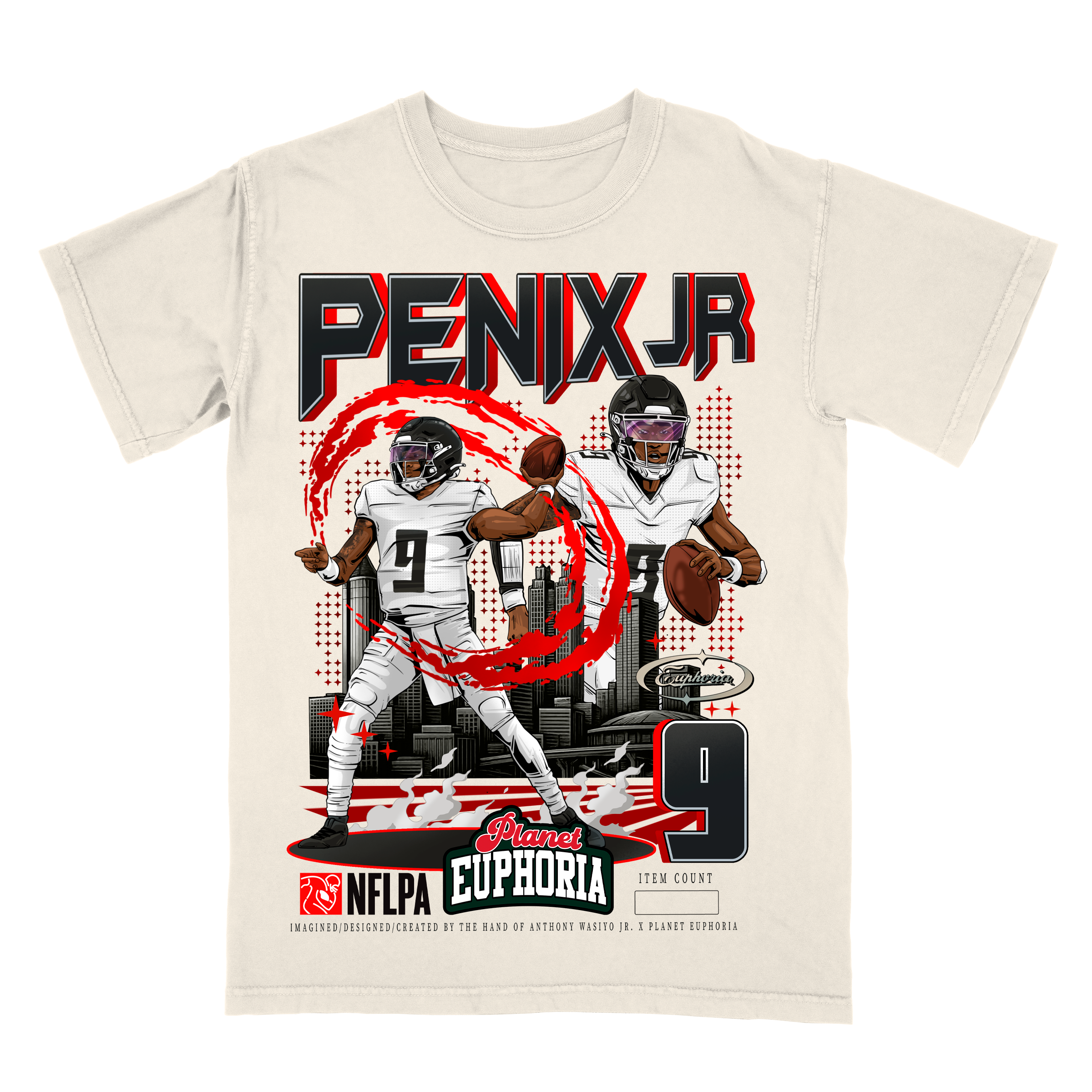 Youth Michael Penix Jr. Off-White T-Shirt: Hand Drawn Artwork - Premium Quality, Hand Made, NFLPA Licensed Graphic Tee for Atlanta Football Fans